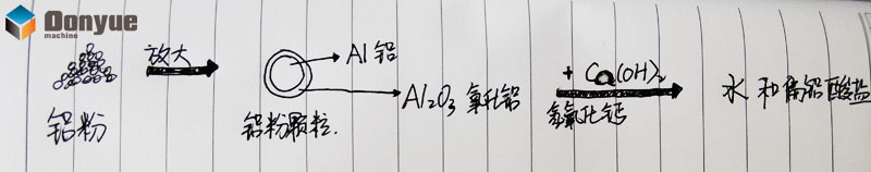 “加氣”過程核心的任務(wù)就是產(chǎn)生氣體,也就是作為發(fā)泡劑的鋁粉和水是產(chǎn)生氫氣。在小編看來主要包括三個步驟: